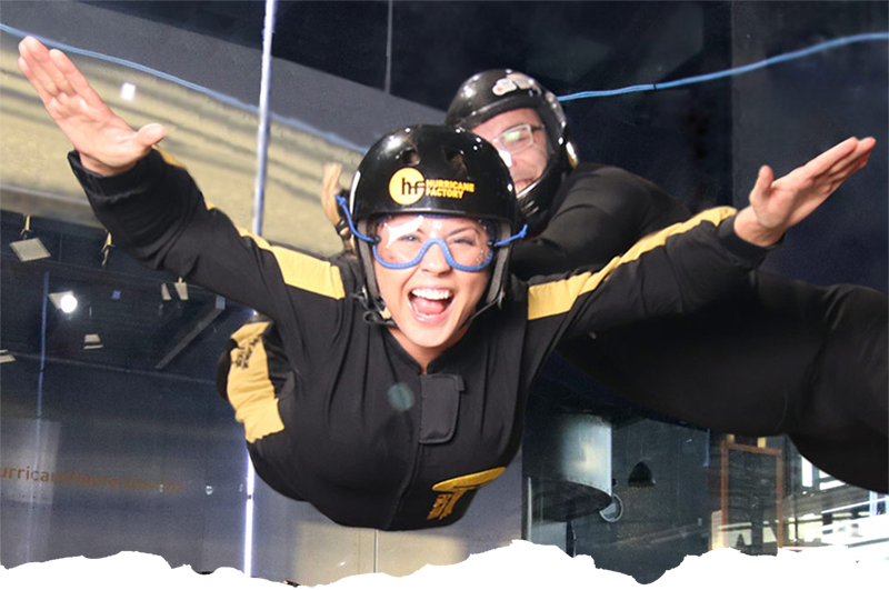 Du willst nur mal schauen, was in der Hurricane Factory passiert? Wir freuen uns über staunende Augen und unser Bistro in der Flughalle bietet beste Sicht auf das Fluggeschehen! Komm‘ einfach mal ‘rein, auch wenn Du (noch 😉) nicht abheben willst, und beobachte die Erstflieger und Profis im Windkanal.