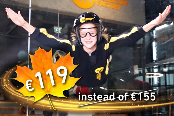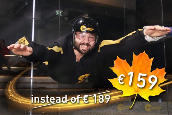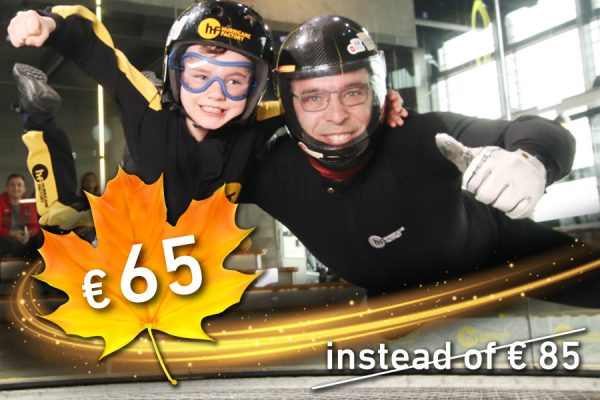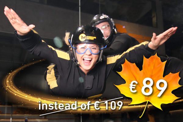 You want to learn how to skydive and are already interested in an AFF training course? In the Hurricane Factory wind tunnel you get optimally prepared! In the 9 minutes HF-Indoor AFF training session the HF-instructors teach you in relaxed atmosphere how to control your movements in the air and to practise all the necessary postures. Get your indoor AFF training certificate after the successful participation and save 10 % on an AFF beginner course at TAKE OFF skydiving! Let’s go in- & outdoor skydiving! Voucher by email to print at home or shipment by mail (+ 3 EUR).